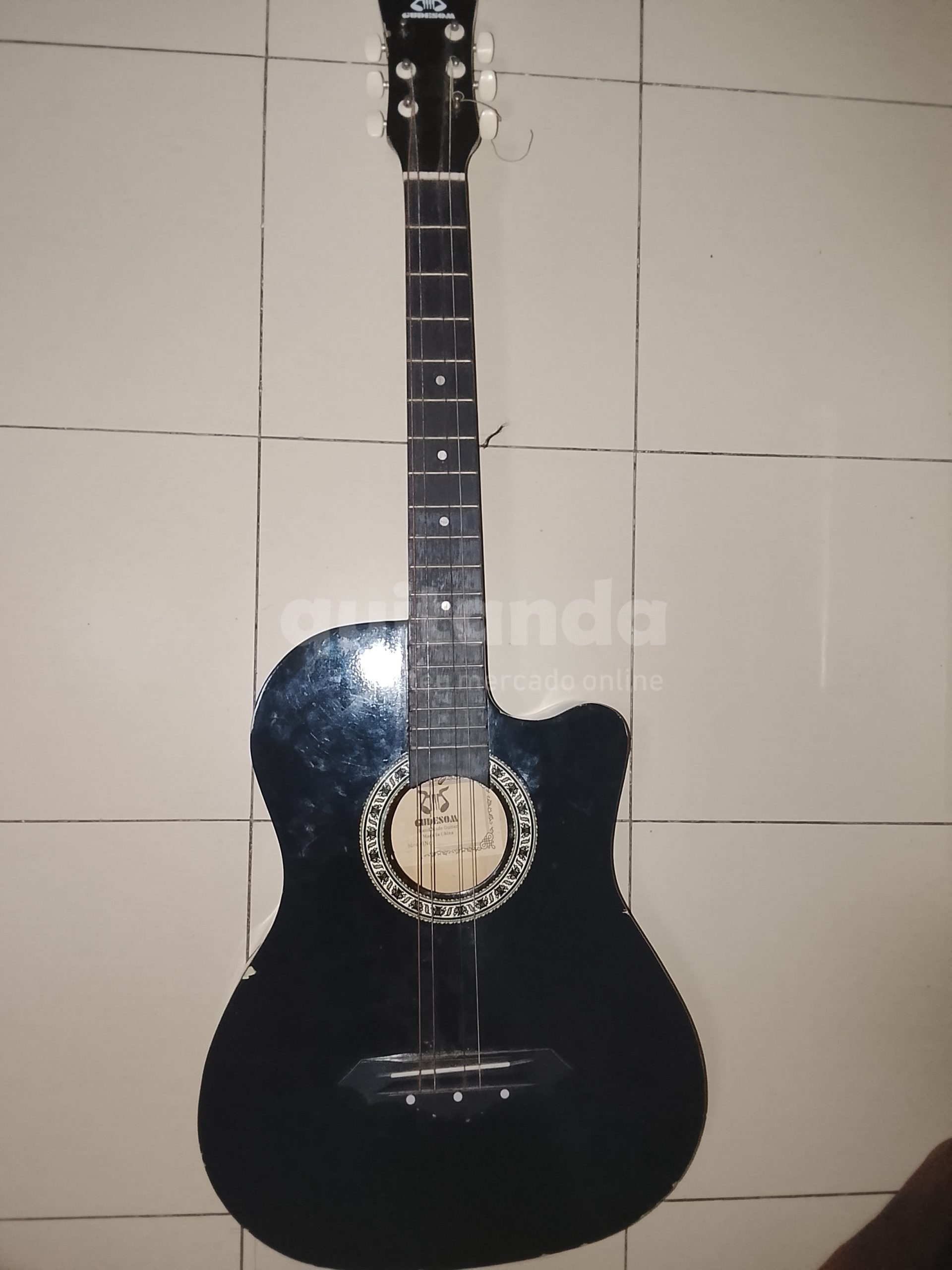 Disponível para venda, guitarra preta em bom estado, ideal para iniciantes e amantes de música.