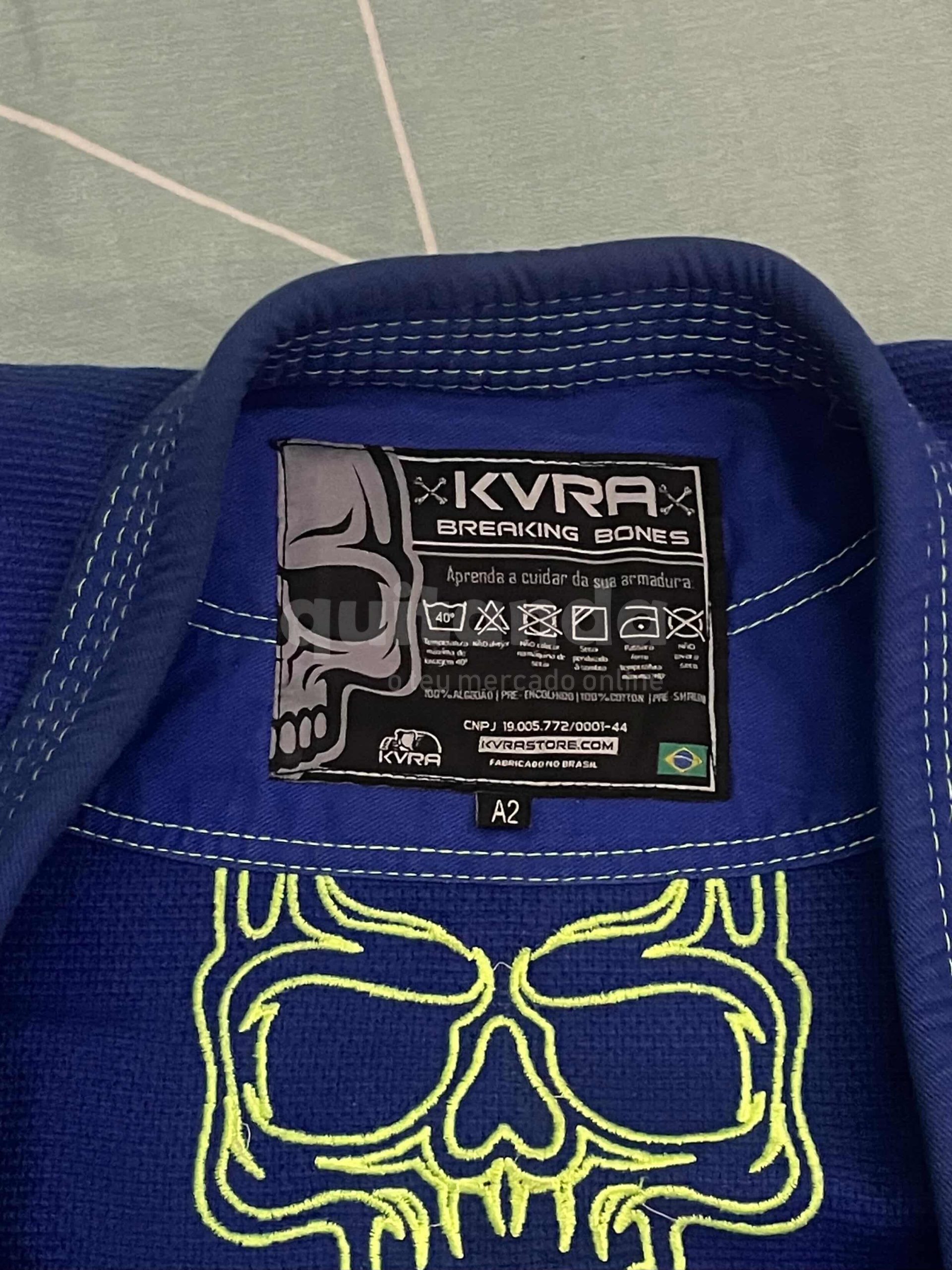 Disponível para venda, kimono KVRA Breaking Bones, tamanho A2, em excelente estado, com pouco uso.
