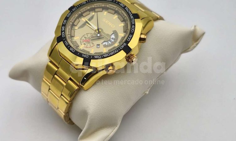 Por apenas 15.000 AOA, adquira o seu Relógio SENO, dourado, em aço inoxidável, com 120g de qualidade, totalmente novo e pronto para entrega.