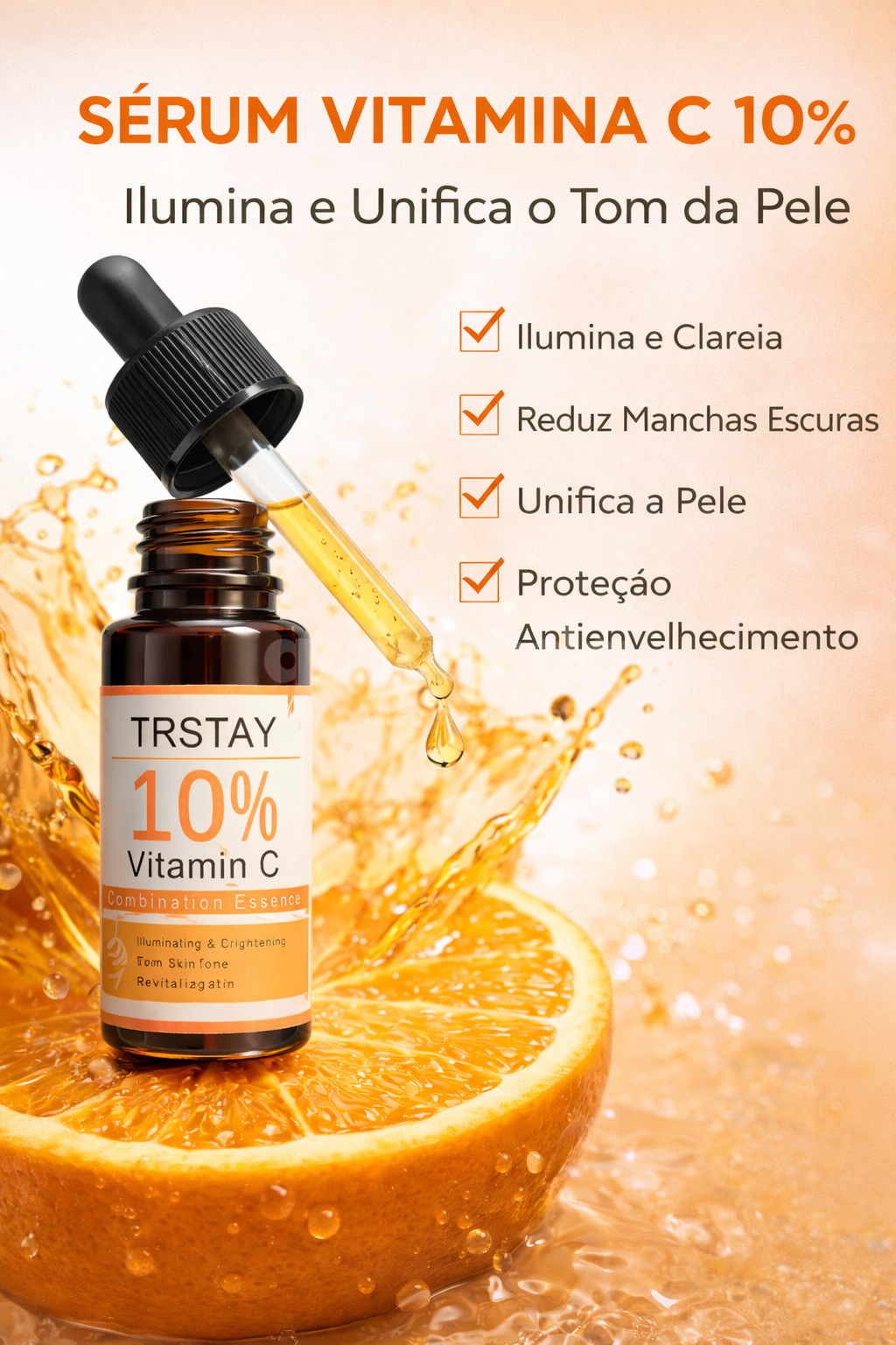 Ilumine e renove a sua pele com o Sérum Vitamina C 10% TRSTAY, desenvolvido para quem procura resultados visíveis e uma rotina de skincare de alta qualidade.